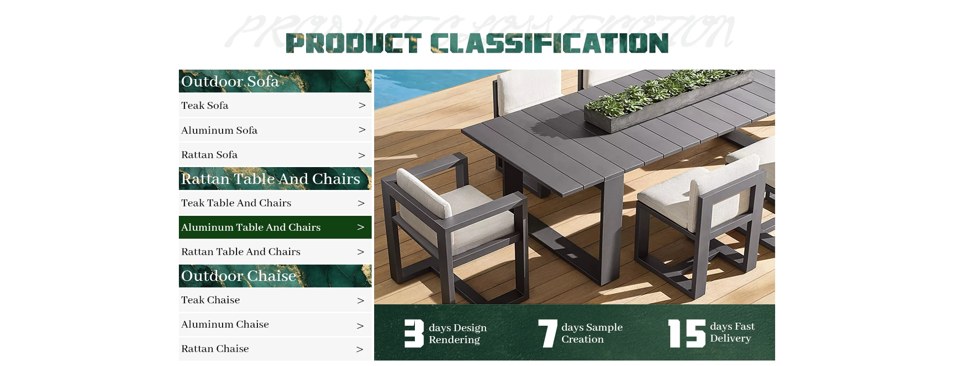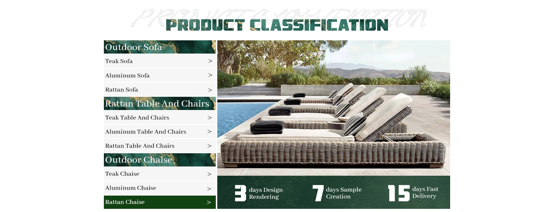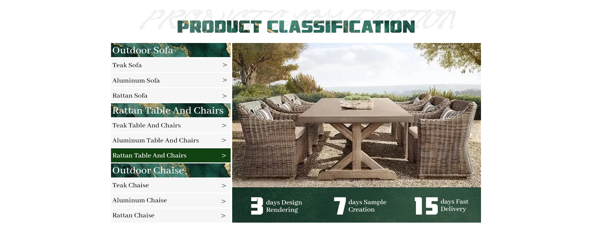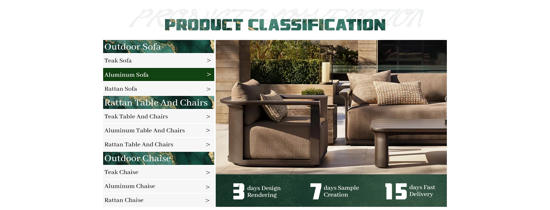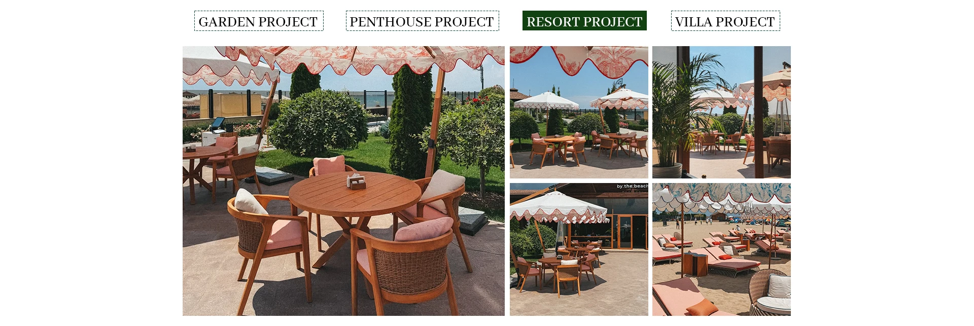Productos principales:Muebles de teca para exteriores, muebles de aluminio para exteriores, muebles de ratán para exteriores, muebles tapizados para interiores, muebles de madera maciza para interiores